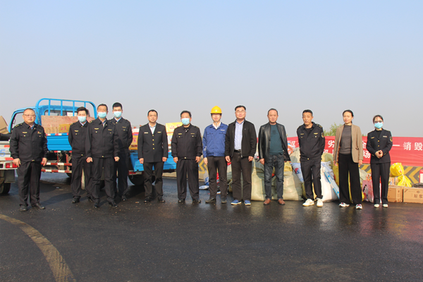霍邱海創(chuàng)配合縣市場監(jiān)督局開展秋季假冒偽劣產品集中銷毀