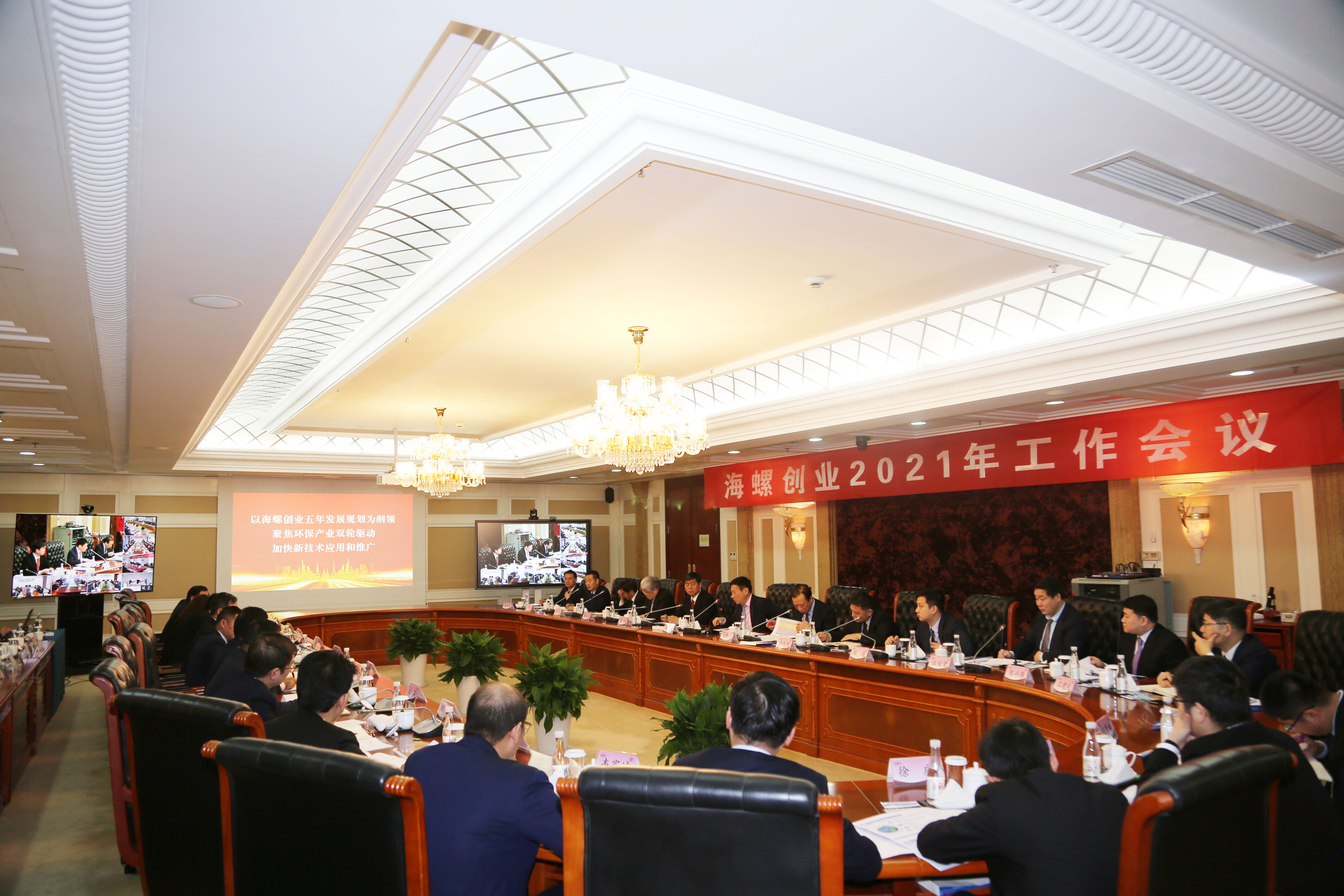 2021年1月29日,海螺創業2021年工作會議在蕪湖海螺國際會議中心582會議室順利召開。公司領導郭景彬、紀勤應、李劍、李大明、韓繼武、疏茂、張可可、汪俊賢、萬長寶、陳興強、章邦志、王建禮,各部室主要負責人及部分部室主管代表現場參會,各區域、子公司相關人員及其他部室主管視頻參會。