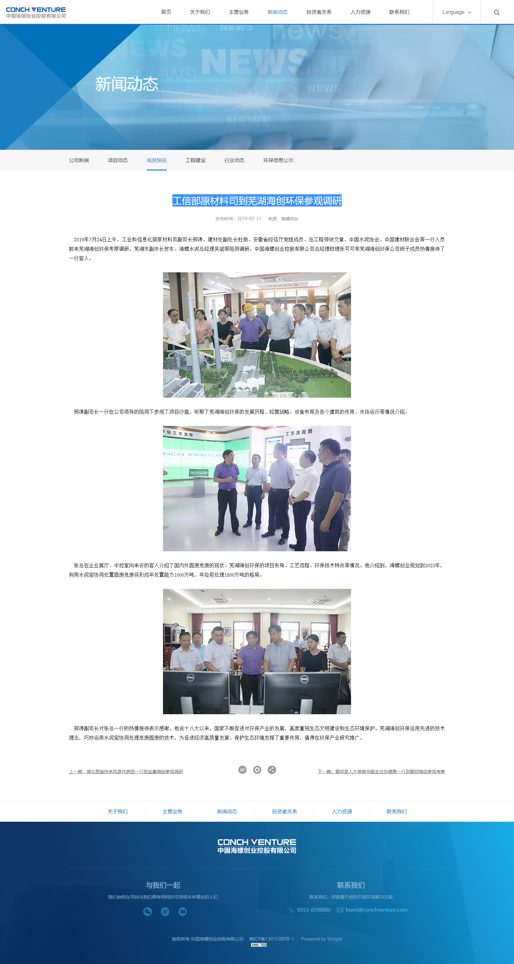 工信部原材料司到蕪湖海創(chuàng)環(huán)保參觀調(diào)研-成員快訊-中國海螺創(chuàng)業(yè)控股有限公司.png