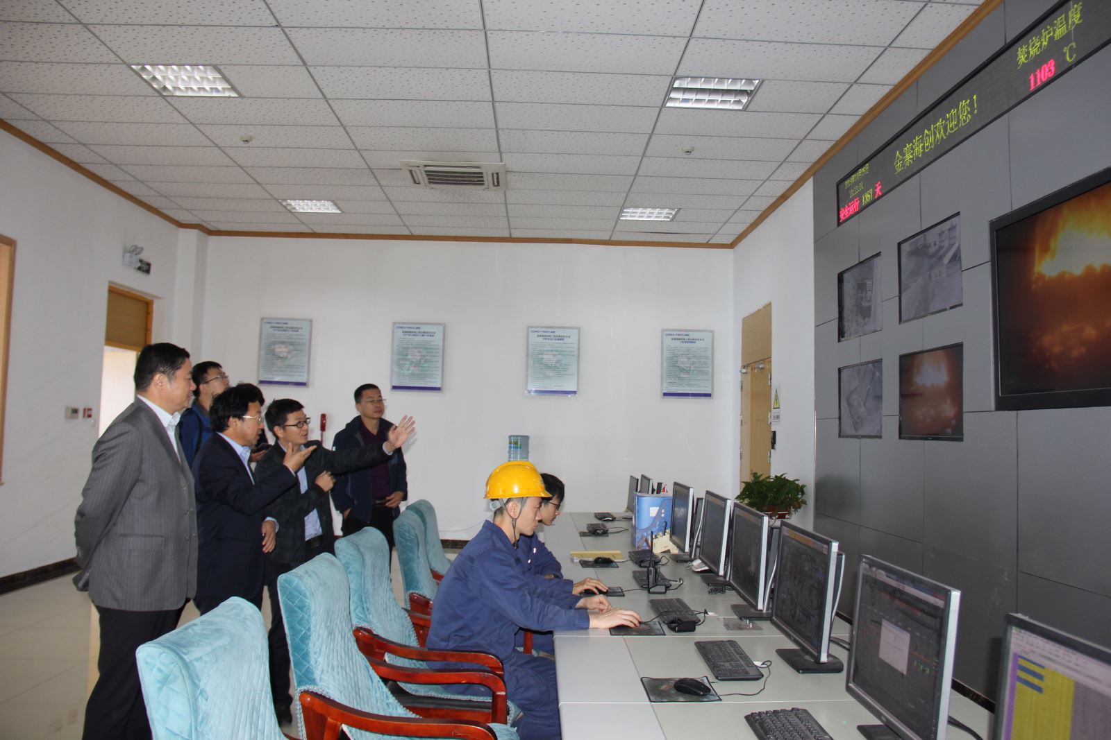 ? ? 在六樓垃圾吊操作室,一行人觀看了進廠垃圾的均化、打堆、投料等過程;隨后,一行人來到了中控室,在副總經理余海洋的介紹下,參觀團對垃圾焚燒的整個操作流程,垃圾儲存投放發酵、廢水廢氣及殘渣處理狀況、焚燒系統的整體運行工況等內容有了更進一步的了解。