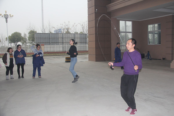 ? ? 跳繩作為一項有氧健身運動被越來越多的年輕人所推崇,賽場上,來自各個部門的男、女職工代表正在張羅著一場別開生面的跳繩比賽。比賽限時3分鐘,以得數最多者為勝。比賽開始了,現場氣氛熱烈非常。參賽選手各個卯足了勁兒,有的憋得面紅耳赤,有的跳得輕松自如。吶喊聲、喝彩聲響成一片。