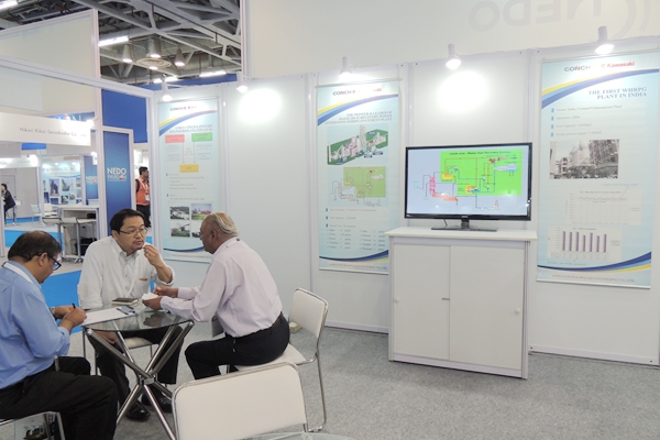 ? ? 近日,海川工程公司由濱田?武彥副總經理組織帶隊參加了在印度大諾伊達舉辦的印度第八屆可再生能源博覽會。該博覽會主要由太陽能、風力發電及余熱回收利用等近400家企業參展,逾千人參會。