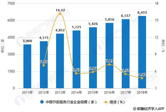 2011-2018年中國(guó)節(jié)能服務(wù)行業(yè)企業(yè)規(guī)模統(tǒng)計(jì)及增長(zhǎng)情況預(yù)測(cè)
