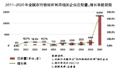 農作物秸稈利用產業:現存企業4.14萬家,2020年新增注冊量漲幅超450%