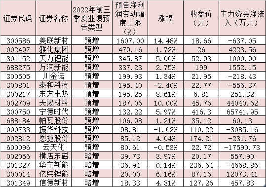 ????表:已披露2022年前三季度業績預告且預喜的鋰電池公司