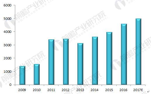 圖表1:2009-2017年工業(yè)危險(xiǎn)廢棄物產(chǎn)生量(單位:萬(wàn)噸)