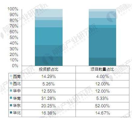? ? 分區(qū)域來看,華東地區(qū)的垃圾發(fā)電建設項目最多,共有39個,占比達到52%,但投資總額低于華南地區(qū),僅為13.41億元;華南地區(qū)僅有4個新項目建設,但投資額達到20.71億元,占比高達31.28%;西南地區(qū)的項目數(shù)量、西北地區(qū)的投資額為最低,分別為3項、3.48億元。