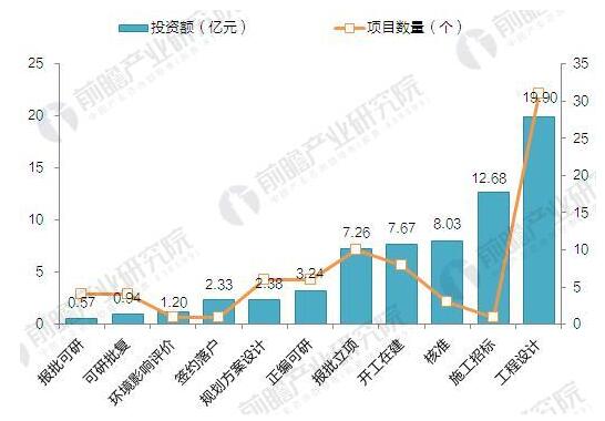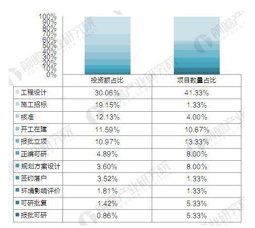 ? ? 從項目所處階段來看,工程設計階段的垃圾發(fā)電建設項目最多,共有31個、19.9億元投資額的在建、擬建項目,項目數(shù)量、投資額占比分別為41.33%、30.06%;其次是施工招標,雖然只有1個項目,但投資額達到12.68億元;處于報批立項階段的項目數(shù)量共10個,僅次于工程設計階段,投資額為7.26億元;尚無已竣工運營的項目。