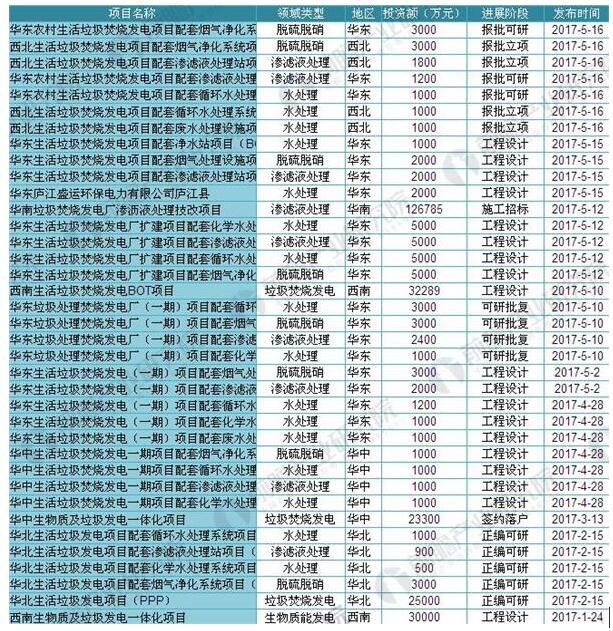 附:2017年1-10月中國垃圾發(fā)電建設項目匯總