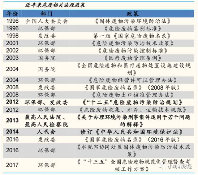 ? ? 目前每年超過 50%的危廢由產生單位自行解決,但還未納入監管范疇,管理要求嚴格程度差別很大,易造成環境隱患。未來隨著監管要求提高,廠內處置存走向專業化;中長期看,固廢集中處理成本低、污染容易控制,工業企業“退城入園”是趨勢。危廢企業將往工業前端靠攏,為廠內處置設施提供 EPC 咨詢服務,或直接介入工業企業運營,定制專業技術服務幫助企業“危廢減量化”生產。