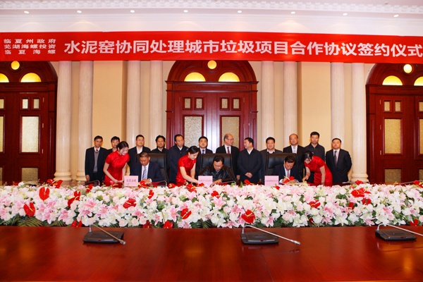 ? ? 在海螺國際會(huì)議中心東海廳舉行了臨夏州利用水泥窯協(xié)同處理城市垃圾合作項(xiàng)目協(xié)議簽字儀式,臨夏州副州長魏賀生、海螺創(chuàng)業(yè)總經(jīng)理紀(jì)勤應(yīng)、臨夏海螺董事長秦宏基共同簽署協(xié)議。