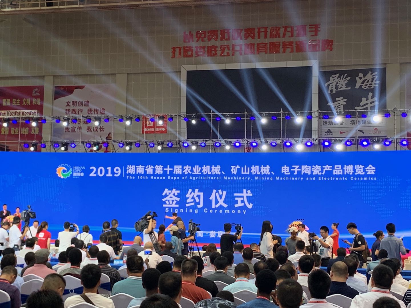On September 17, 2019, the tenth Hunan Expo was successfully held in Loudi Sports Center. He Baoxiang, deputy governor of the Hunan Provincial People's Government; Li Jianuo,secretary of the Loudi Municipal Party Committee and director of the Standing Committee of the Municipal People's Congress and Yang Yiwen,deputy secretary of the Municipal Party Committee and mayor participated in the event. Ji Qinying, General Manager of Conch Venture, and Li Qunfeng, Deputy General Manager of Conch Cement were invited to attend the meeting.