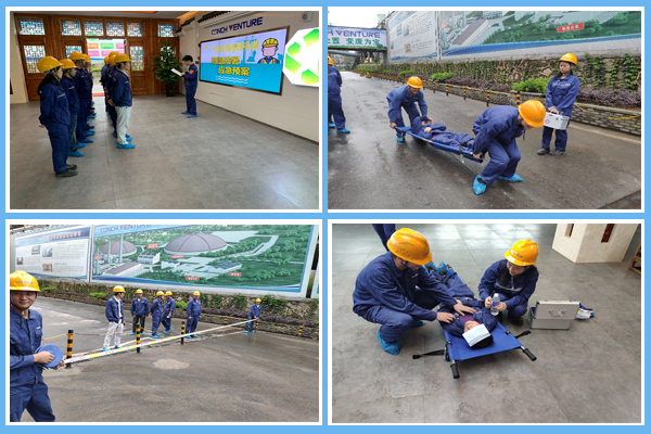 ? ? 根據活動方案本次演練人員共分為四組,分別負責現場事故信息報告、中暑人員搶救、疏導交通線路、救援演練車輛安排以及應急資金的及時供應。公司安全員全稱記錄演練過程并留存音視頻資料學習。在預設情景下,某班組工人出現暈厥倒地的中暑癥狀,班組長發現情況后立即向公司安全員及部門領導匯報并組織人員開展急救工作,同班組人員將“中暑人員”抬至通風陰涼處,脫掉“中暑人員”安全帽等勞保用品,解開上衣紐扣,利用濕毛巾幫助“中暑人員”降溫,救護組接到通知立即攜帶急救箱趕往現場,幫助“中暑人員”口服藿香正氣水,并輔通過掐人中等措施,使“中暑人員”改善中暑癥狀,與此同時,警戒小組迅速疏導交通線路,設立隔離帶,后勤小組同步安排救援車輛入廠并模擬撥打120求助,說明病情、病因、接應地點等情況。